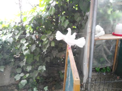 Palomas colipavas blancas. Adultas, buenas criadoras.
