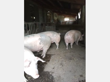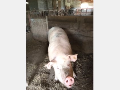 Cerda, pero aprox 90-100 kilos Criada desde lechon con sobras de huerto, calabazas y ...