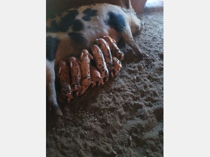 Se vende cerda de cria pietrain muy buena reproductora adjunto fotos del último part ...