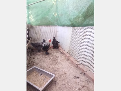 Se cede un gallo y 2 gallinas de raza brahma.Tienen dos años y está poniendo.