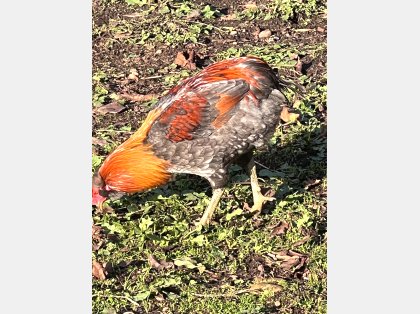 Gallo de un año muy tranquilo ya montado a las gallinas y bien cuidado come de todo