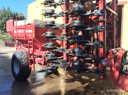 Sembradora neumática usada de siembra directa de discos, marca lamusa, de 6 metros de ancho de trabajo, modelo sd-5000. Capacida ...