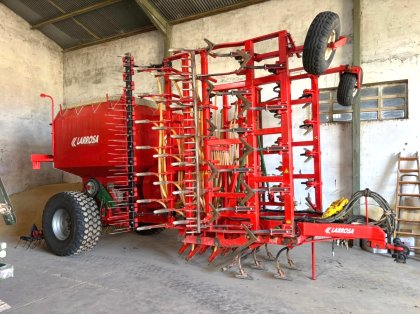 Sembradora neumática usada marca larrosa, de siembra tradicional, de 7 metros de ancho de trabajo, ...