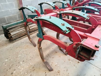 Cultivador usado de segunda mano de 11 brazos, equipado con rodillo. Estado: muy bueno.
