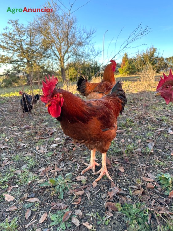 Venta de pollos de corral con un peso aproximado de 5 kg, alimentados a mimo a base de cereales como trigo y maiz, criados en libertadas y comiendo hierba y picoteando por la hierba lo que encuentran.
