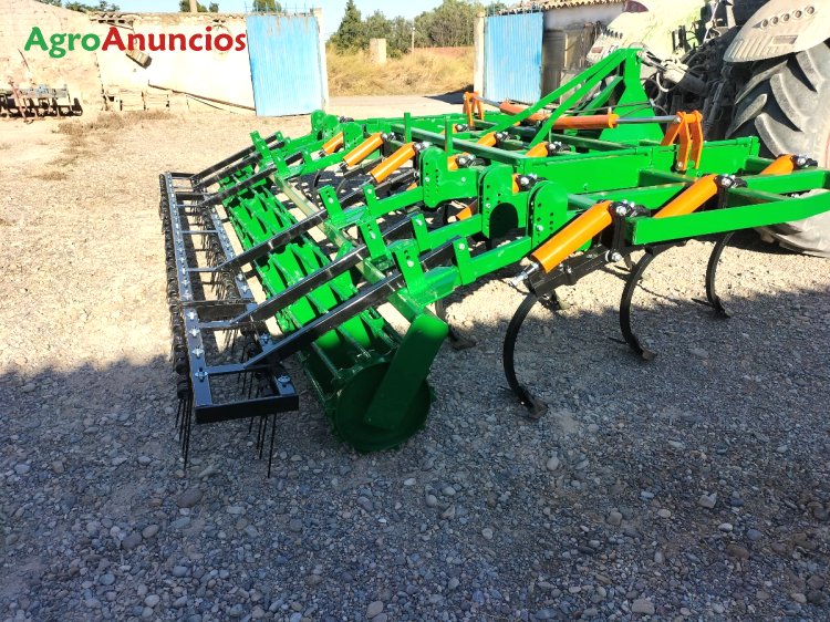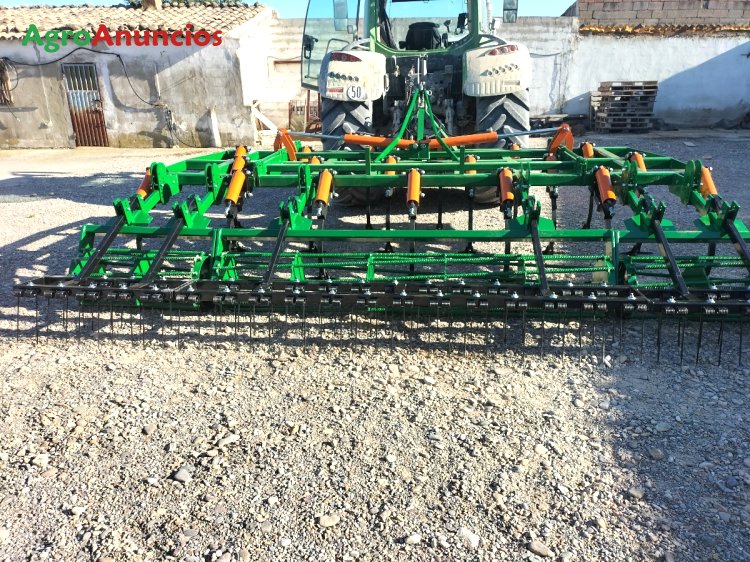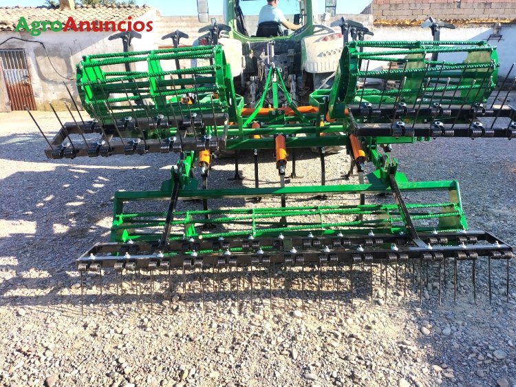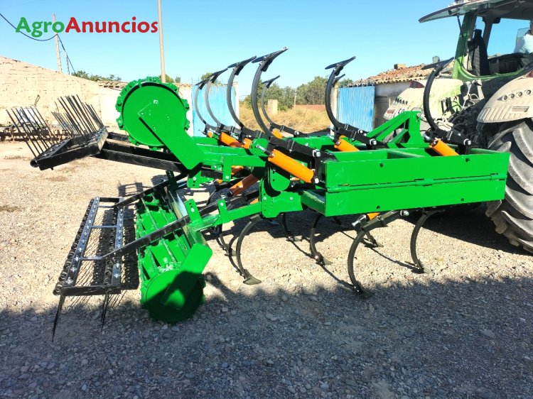 Semichisel de 19 brazos 40x30, montado en 3 filas, chasis de perfil 100x100x8, con los 2 lados abatibles 4+11+4 con 2 cilindros hidráulicos independientes y con rulos de varillas de 450 mm con redondo corrugado de 25 mm.