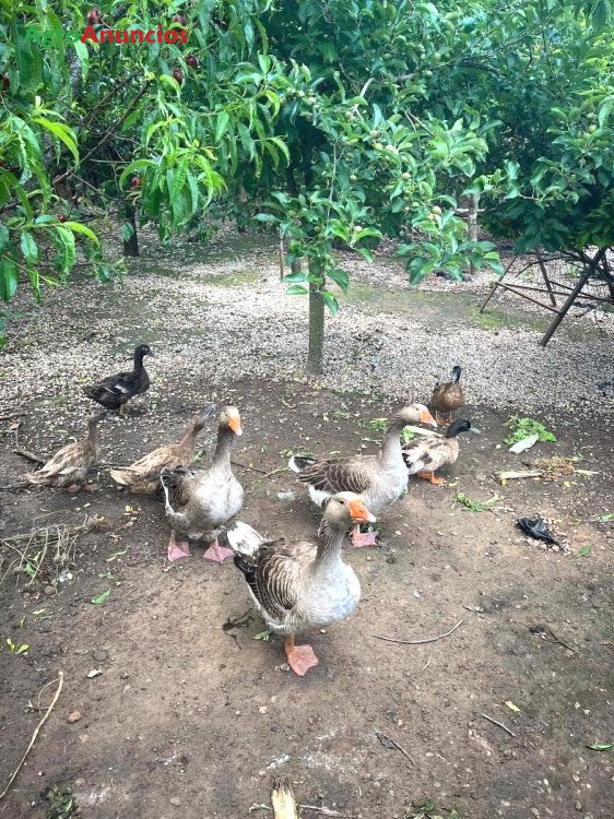 Ocas de raza tolouse, son 3 hembras y un macho adultos, ponen en abundancia a lo largo del año.