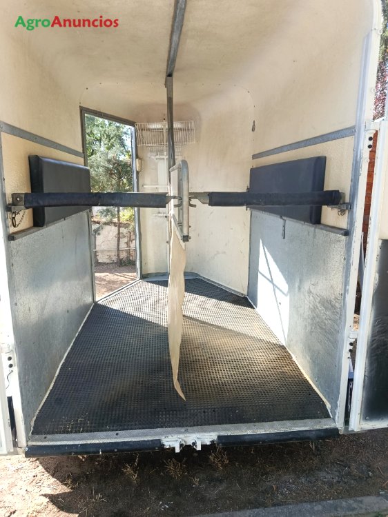 Van en muy buen estado. Itv al dia. Ruedas al 90 % de vida útil. Suspensión de ruedas independientes, por medio de silenblocs en los ejes, frenos en las cuatro ruedas. Dispone de guadarnés para dos equipos de montar completos con cabezadas, rendajes auxiliares y cesta para útiles de limpieza, protectores, mosquiteras, etc. Luz interior. Muy amplio. Caben dos caballos de gran alzada. Estructura de poliestar con refuerzos metálicos. Separador de caballos de acero galvanizado y plástico duro. Dispone de acolchados en los laterales del interior para evitar roces al caballo. Suelo de goma antideslizante. Rueda jockey plegable. Matricula roja. Se puede conducir con carnet b. Siempre guardado en garaje o bajo techo