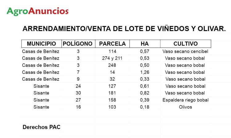 Rento o venta de lote de viñedos y olivos con derechos pac. No se exige renta fija. Referencias sigpac en las fotografías del anuncio.