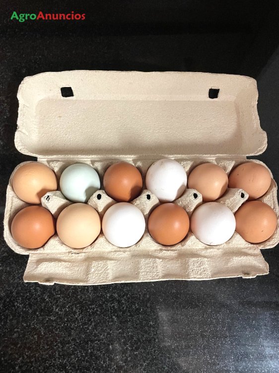 Huevos de gallinas sueltas en finca. Alimentados al 100% con productos naturales