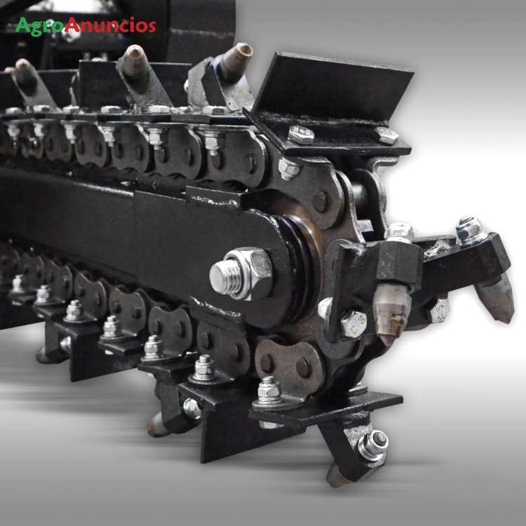 El equipo permite excavar con una profundidad máxima aproximada de 60 cm, ideal para la instalación de tuberías, mangueras, cables eléctricos o líneas de riego enterradas. El ancho de zanja es de unos 10–12 cm, suficiente para la mayoría de trabajos de canalización. Su cadena reforzada con 27 dientes de carburo, altamente resistente al desgaste, garantiza un corte limpio y eficiente. La longitud de corte supera los 2 metros, permitiendo un trabajo continuo sin interrupciones.