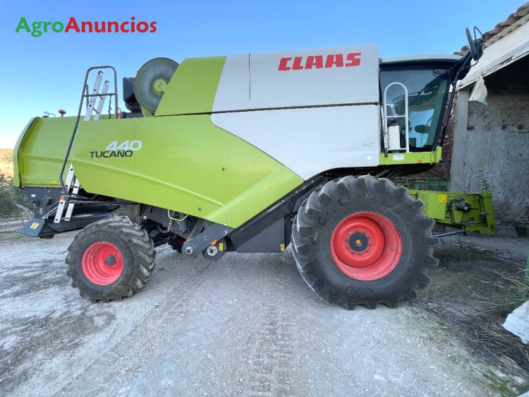 Cosechadora claas tucano 440 del año 2017, con solo 5660 horas de trabajo y equipada con un corte de 6,20 metros.