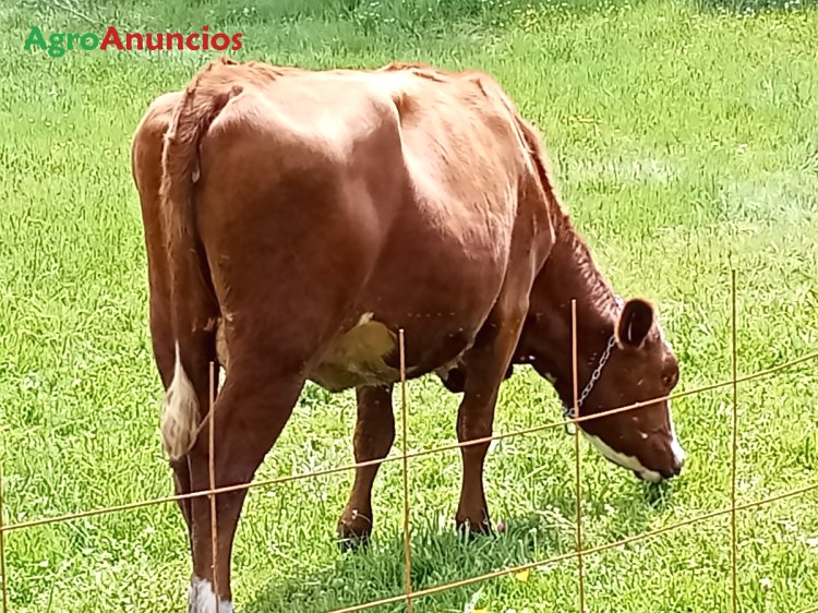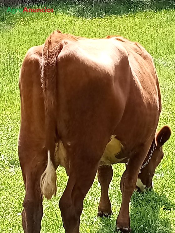 Vaca cruzada jersey-frisón, muy mansa. Preñada de 2 o 3 meses de toro angus.