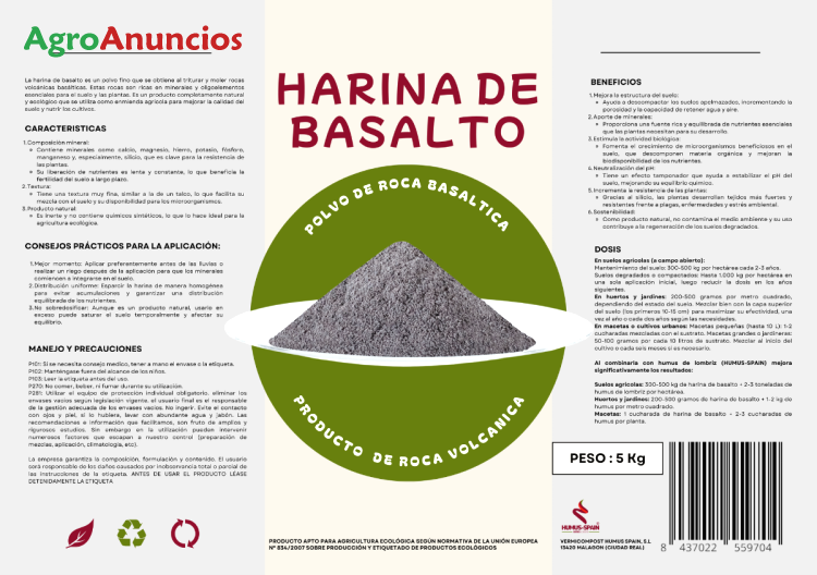 El basalto contiene una serie de nutrientes esenciales para cualquier cultivo: silicio, calcio, magnesio, hierro, manganeso, zinc, oligoelementos.