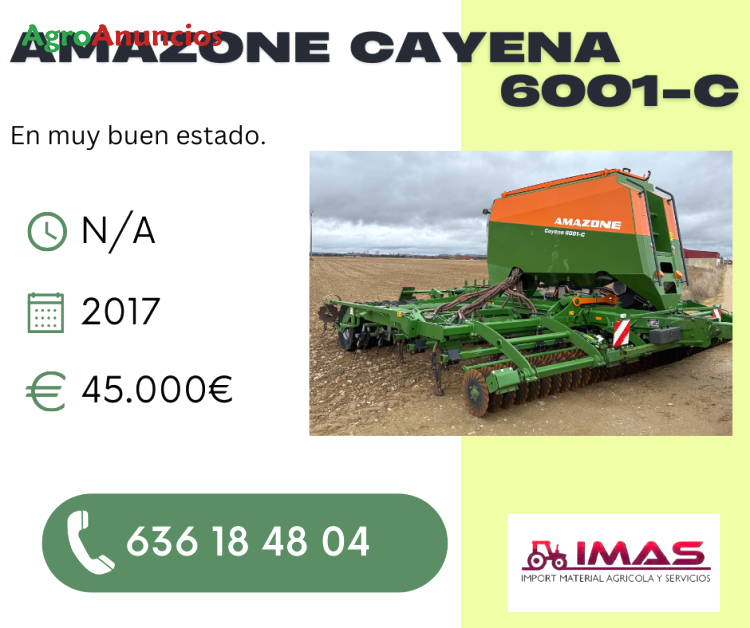 Venta de sembradora amazone cayena 6001-c. En muy buen estado. Año: 2017 precio: 45.000€ para más información, no dudes en contactarnos al +34 636184804