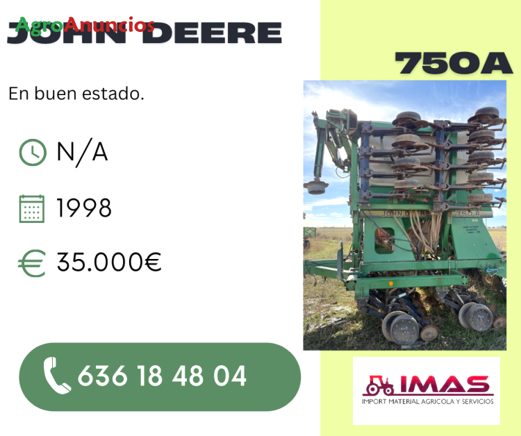 Venta de sembradora john deere 750a. En muy buen estado. Año: 1998 precio: 35.000€ para más información, no dudes en contactarnos al +34 636184804