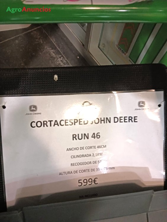 Liquidacion, de cortacesped marca john deere, modelo run 46, con 46cm de plataforma de corte, motor de 2,1 kw, recogedor de 52 litros