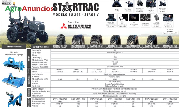- startrac 263 farmatrac avenger 30 cv/hp, motor mitsubishi diésel 3 cilindros, 4x4 dirección hidráulica, fase v, matriculado en 9.600 € + iva.