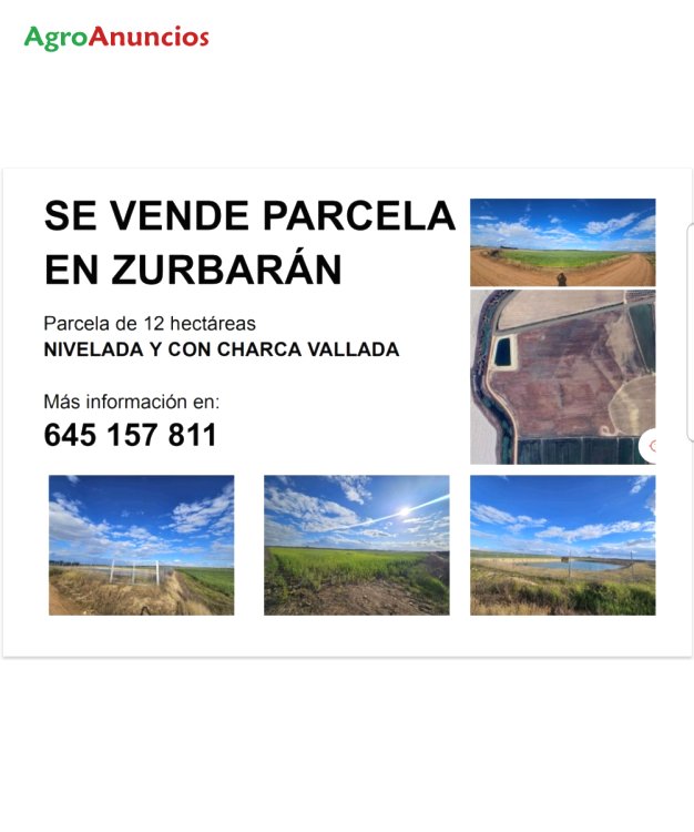 Parcela regadio entre zurbaran y torviscal de 12 hectáreas con nivelación y charca vallada.