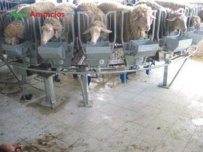 Sala de ordeño rotativa para ovino - caprino con alimentación automática , regulador de velocidad y retirada automática .
