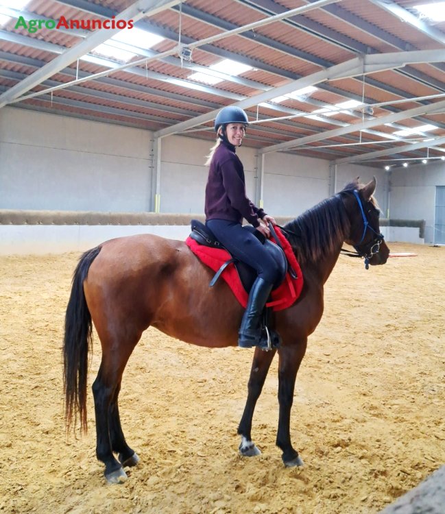 Yegua anglohispanoárabe. 14 años castaña. Domada y excelente para rutas. Noble y muy sociable con otros caballos. Gran resistencia y buen paso, sangre caliente. Posee tarjeta de movimiento nacional y libro azul. Al día de revisión veterinaria, boca, vacuna y desparasitada. Se encuentra en centro ecuestre picu'l sol en pupilaje, durante el día en paddok y duerme en box. Ideal para personas avanzadas y/o expertas.