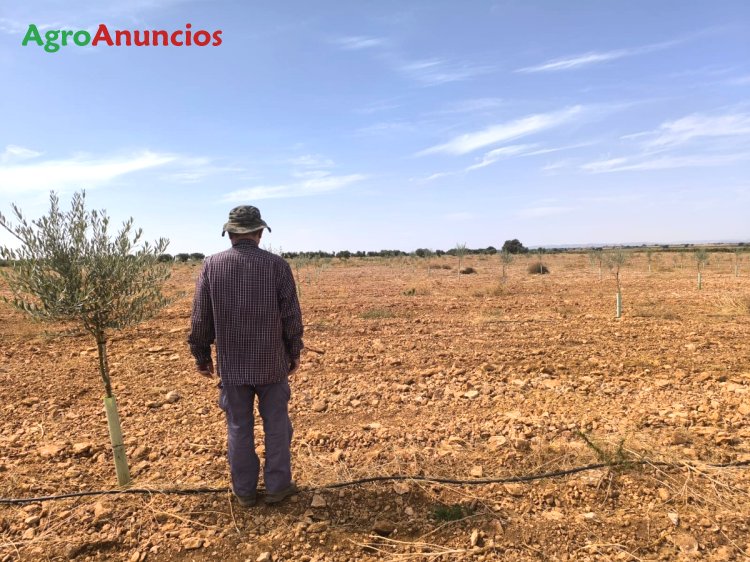•la mitad de la finca está plantada de olivos picual a 7 x 7 metros. Se plantaron en el 2024 y los 2 sectores de riego que ocupan se riegan de una sola vez.