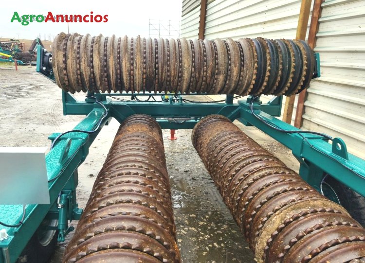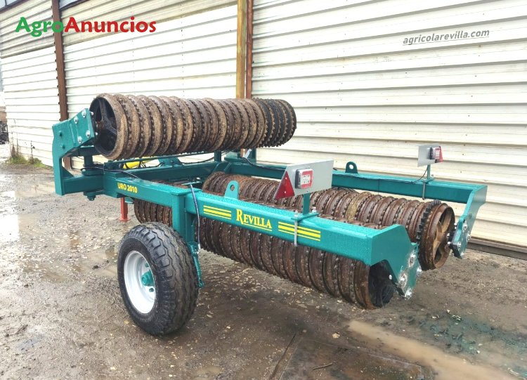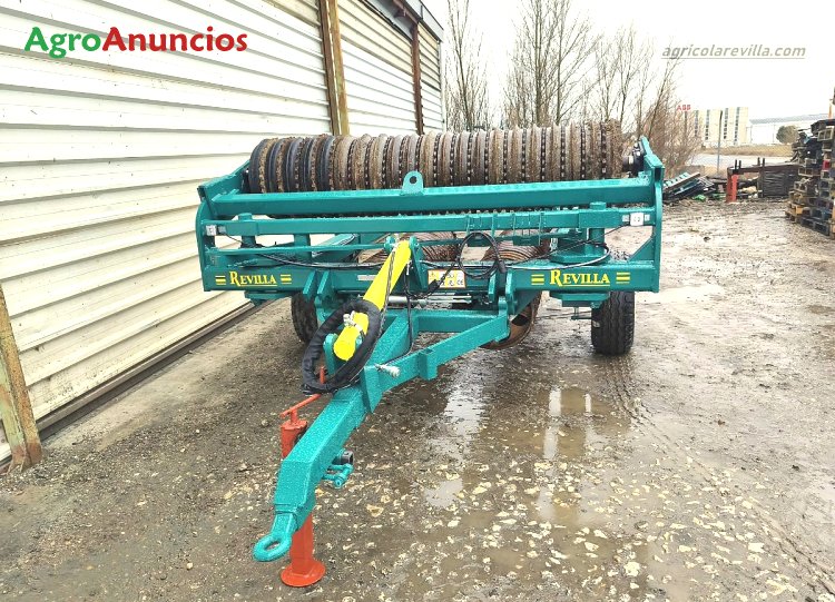 Se vende rodillo de 7,0 m de trabajo equipado con discos flotantes de 500 mm, marca revilla. Este rulo se ha fabricado con un chasis nuevo y con discos flotantes usados de 500 mm. Los discos de fundición proceden de la sustitución de los mismos por tubos.