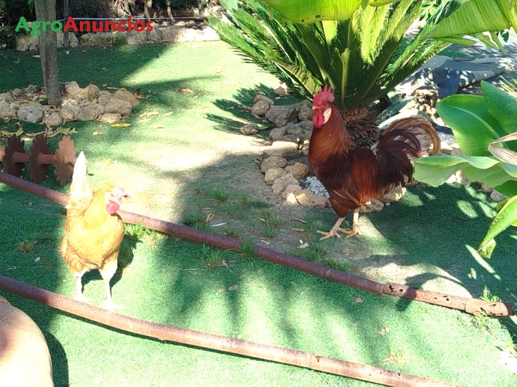 Magnífica pareja de gallinas de raza leghorn buff