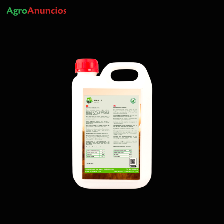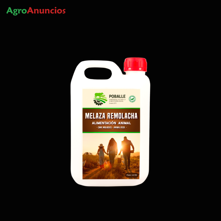 Se vende melaza en garrafa de 2,5kg. Para alimentacion animal, como reclamo de caza (al tener un buen olor y ser dulce los animales acuden). La melaza es un líquido denso y negruzco, constituido por el residuo que permanece en las cubas después de la extracción de la mayor parte de los azucares de remolacha o de caña por cristalización y centrifugación. Es un concentrado de hidratos de carbono y los azúcares representan del orden del 80% de su contenido en materia seca.