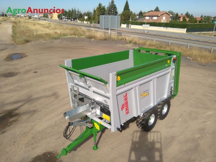 5,60x2,35x2,00. Capacidad, 26,5m3, ruedas 560/60r22,5, suspensión tanden o boguie, lanza suspensión ballesta 11 hojas, enganche de anilla atornillado.