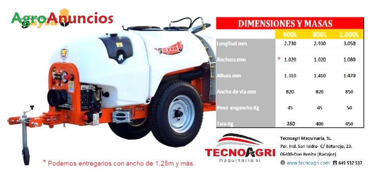 !!! bajada de precios unidad en existencia !!! atomizador de 800 litros especial invernaderos, para fresas, berries y arándanos con la versión más estrecha que va desde 1,00m hasta 1,30m de fuera a fuera de rueda en 800lts con turbina de 700mm y bomba de pistones de 70l x min. Lanza giratoria tripuntal en "v" y transmisión homocinética.
